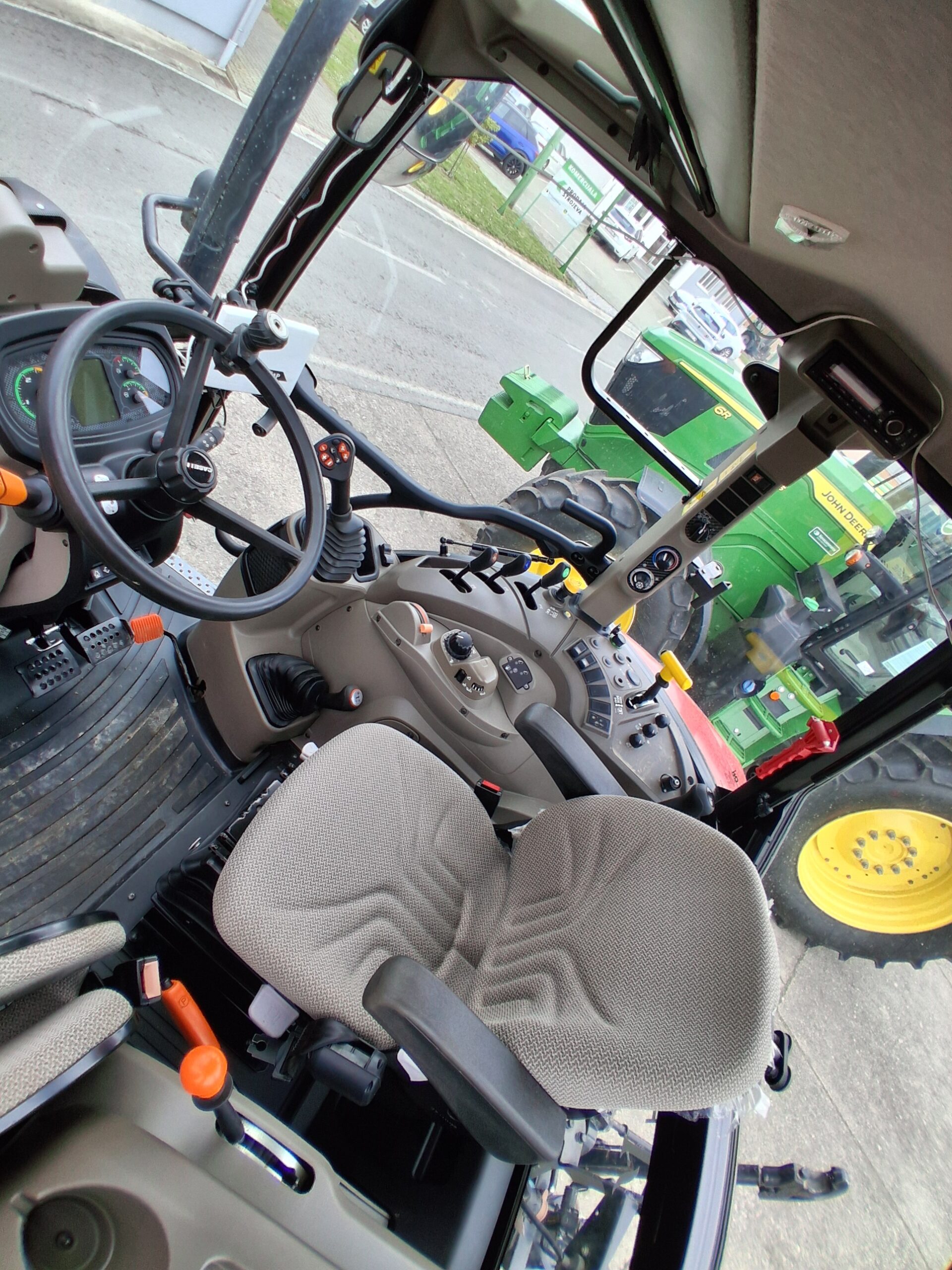- John Deere CabPlus kabina s klima uređaj, standardni vanjski retrovizori lijevi i desni, unutrašnji retrovizor, super komforno vozačko sjedalo sa zračnom suspenzijom, analogno/digitalna instru-mentna ploča, nagibni i teleskopski upravljač, fiksno vjetrobransko staklo, brisač s pranjem vjetro-branskog stakla, priprema za radio - zvučnici i antena, sjenilo za sunce, unutrašnje osvjetljenje, krovno svjetlo i osvjetljenje desne konzole, suvozačko sjedalo