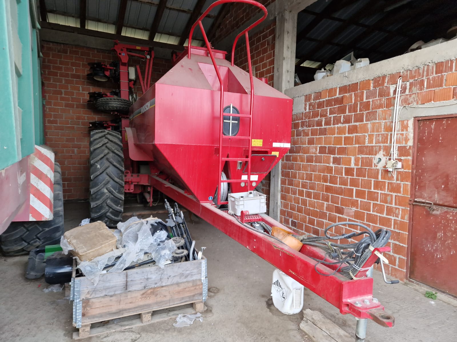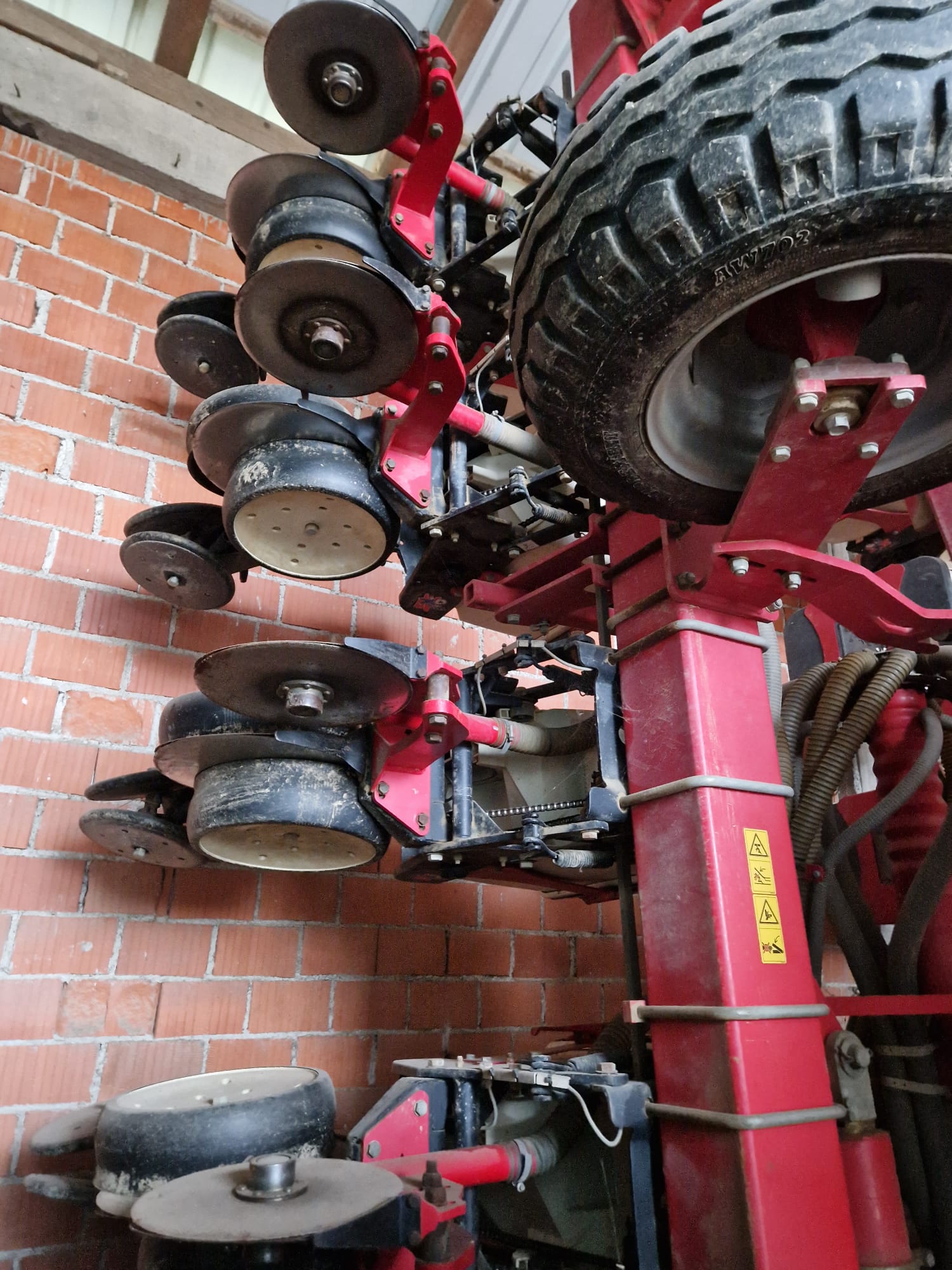 2009. godina, 12 redna pneumatska sijačica, međuredni razmak 70 cm, diskosni ulagači za gnojivo i sjeme, hidraulično sklopiva