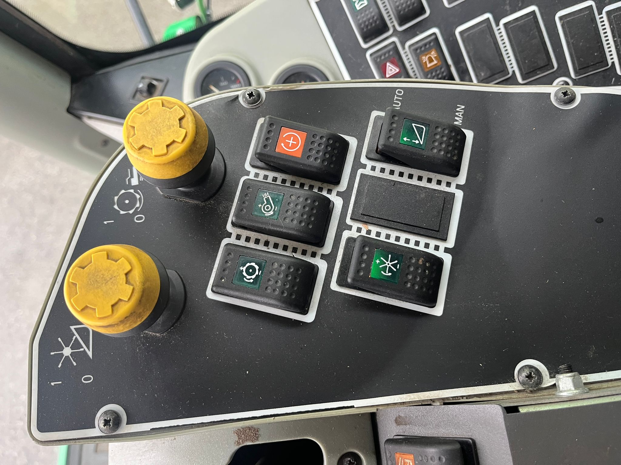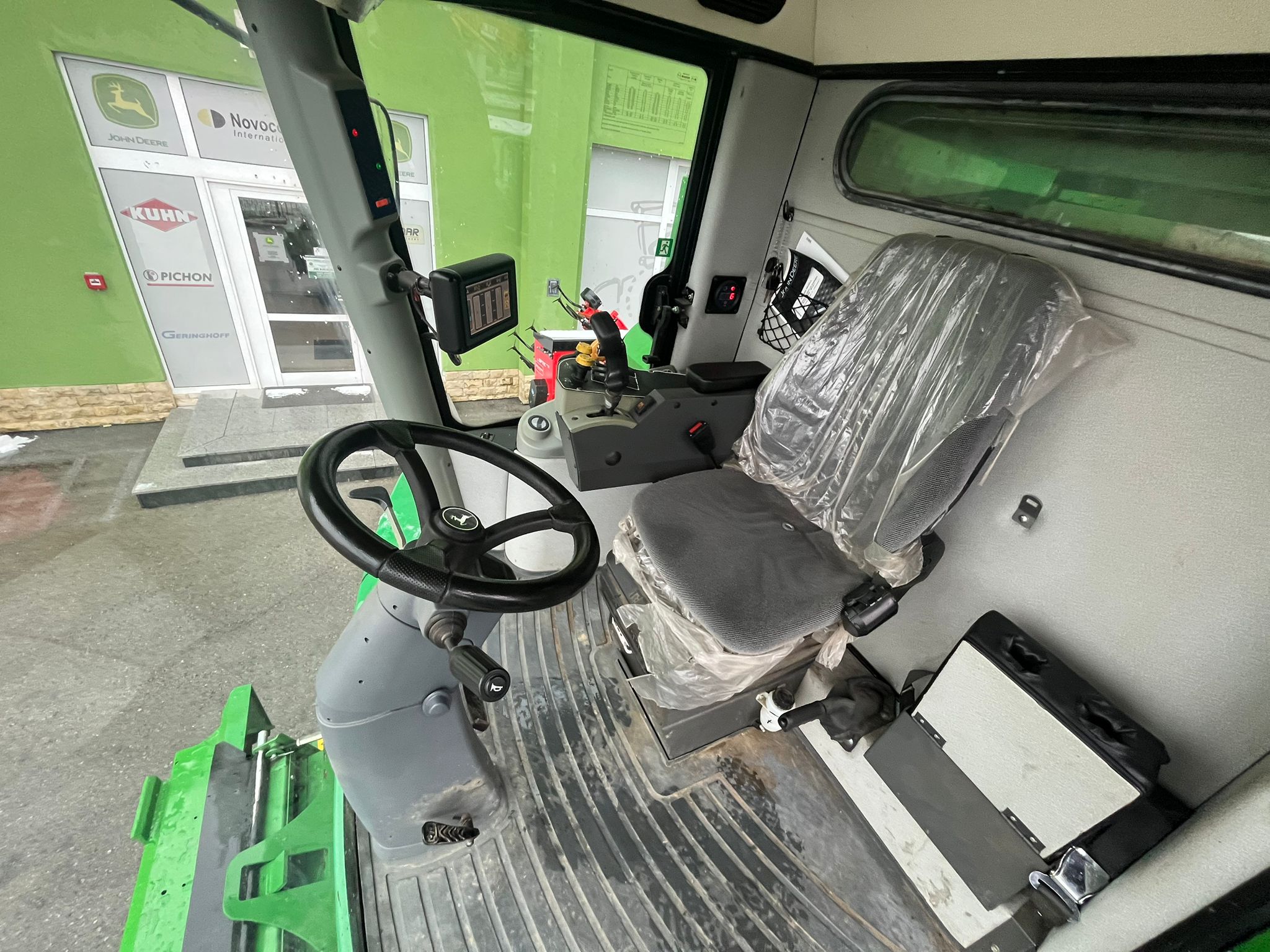 John Deere Premium kabina, grijanje, ventilacija, klima uređaj automatski, podesivi upravljač, brisač vjetrobranskog stakla, električno podesivi i grijani retrovizori, Premium radio uređaj, središnje smješteno zračno sjedalo vozača, suvozačko sjedalo, pretinci za odlaganje MasterControl ergonomska ručica pruža odličnu kontrolu upravljanja i rad s brojnim funkcijama poput kontrola hederom, vitlom, istovarnom cijevi te brzinom i smjerom kretanja, upravljanje stolom kod 600X hedera Zaslon na stupu kabine u boji, pokazuje brzinu kretanja kombajna, broj okretaja motora i mjerač snage, indikacijske upozoravajuće lampice, pokazivač stupnja prijenosa mjenjača, HarvestMonitor – senzori prinosa i vlage